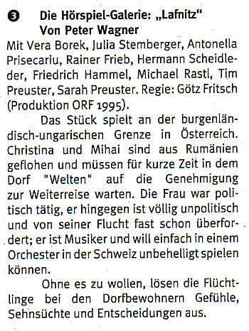 - „Lafnitz“ - Hörspiel mit: Julia Stemberger, Eva Borek - ORF